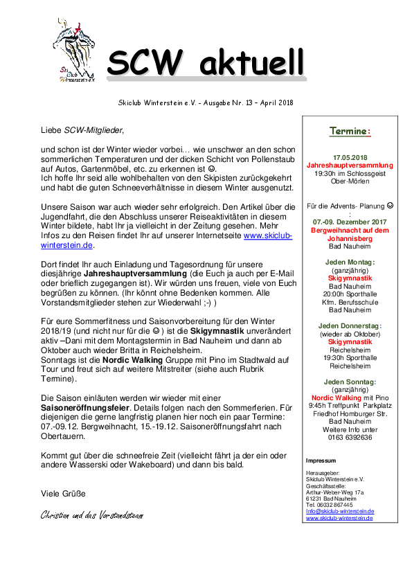 SCW Newsletter Nr. 13